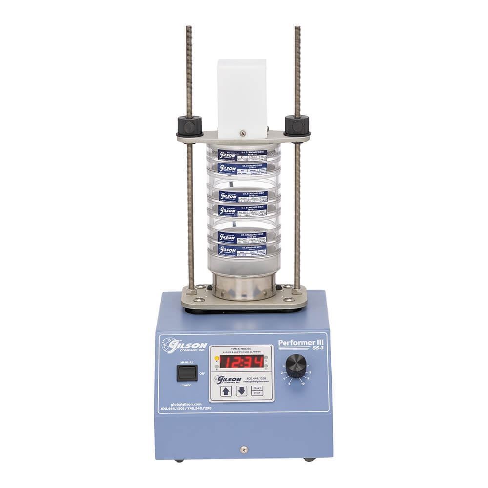 振动筛可接受直径为3英寸(76毫米)的ASTM试验筛或Gilson的丙烯酸和非金属框架筛。电磁振动筛包括SSA-173英寸丙烯酸筛网适配器和金属筛盖。订购SSA-15或GAA-88丙烯酸垫片,用于在调平平台时观察样品动作或设置振动。
