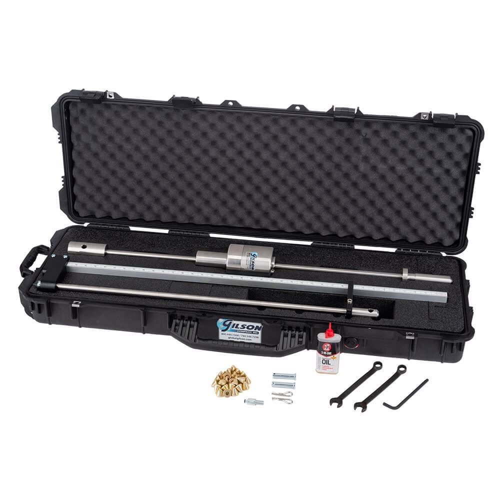 双质量套件包括一个带运输轮的抗压Pelican手提箱、双质量锤驱动组件、30英寸(762毫米)的下驱动杆、一个硬化的多用途锥体和25个带适配器的一次性锥体。还包括一个连接到下杆的单独垂直标尺、两个销钉和夹子组、一个T形手柄六角扳手、开口扳手、三合一油、润滑剂、用户手册和一个带软件的USB闪存盘,以及一个Excel®模板DCP指数计算。额外的一次性锥体、锥体适配器和硬化点可单独购买。